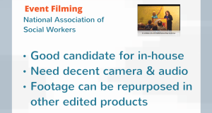 Yes, you can. The National Association of Social Workers may have used a high-level consumer or professional-quality camera to create this video, but all they had to do was point the camera at the podium to create this documentation of Dr. Jill Biden’s speech at their national conference, and you don’t need a professional for that. Of course this video isn’t extremely exciting, and it depends entirely on Dr. Biden’s skill to create the kind of storytelling that will interest a viewer, but it serves a purpose, and it may be useful for the kind of inexpensive professionally produced video we’ll describe next.
