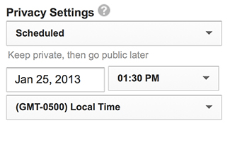 Another thing to do to prepare for the future of video is to experiment with YouTube’s scheduling feature. YouTube partners have had this capability since 2011, and YouTube made it available to everyone without fanfare in the summer of 2012. All you have to do is when you upload your video, select “scheduled” instead of “public,” “unlisted,” or “private.” This allows you to make sure that your video channel has new content on a consistent schedule–and you can consider the whole schedule at a single time.