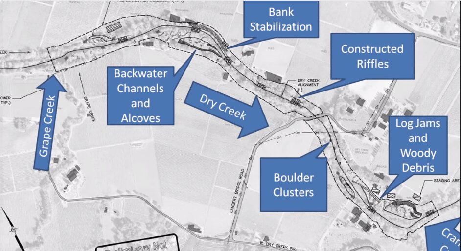 The project the video depicts was the product of a broad partnership. Groups as diverse as environmentalists, farmers, landowners, and wineries—as well as federal and state agencies—came together in an effort to preserve the North Coast Salmon. So when it came to documenting the project in video, it just made sense to call on all the partners to contribute. Whereas a report or a brochure might not lend itself to utilizing a broad range of contributions, the video could really draw on a variety of resources. One member of the partnership had gorgeous photographs of the creek that we could showcase in the video to emphasize the preciousness of the resource the project preserved; another had schematic drawings which communicated technical solutions that were central to the project.