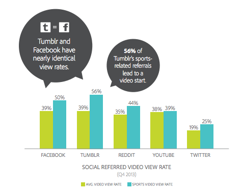 ReelSEO has pointed out an interesting finding from Adobe’s 2013 Video Benchmark Report — that video marketing on the blogging site, Tumblr may be valuable. Sometimes overlooked, Tumblr kind of straddles the social media definitions. Like WordPress, it’s a blogging platform. Like Twitter and Facebook it tends to run to short bits of information. And like Pinterest it’s dominated by visual media. Yahoo bought the site in May 2013 for $1.1 billion.