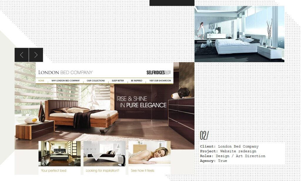website shows double sliders–when you click the > or the < in the black box, the small image will change as well.